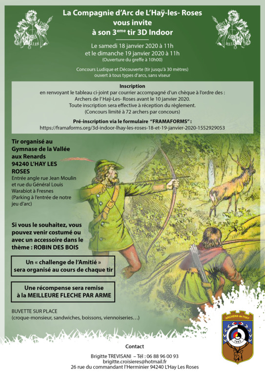 Pré inscription via le lien vers le formulaire FRAMAFORMS sur le mandat (attention : 72 archers maximum par journée).